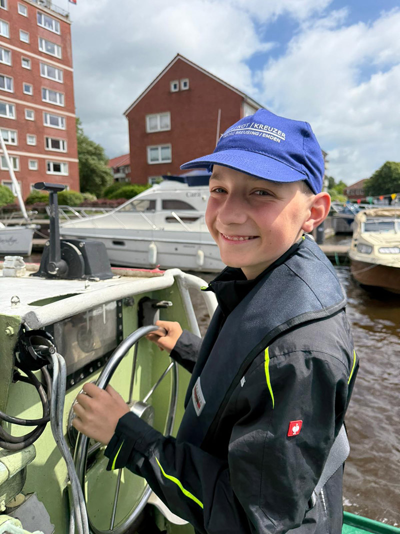Unser jüngstes Mitglied Henrik hat uns zum Matjesfest tatkräftig unterstützt. Der 14jährige Steppke kommt eigentlich aus dem Hessischen - ist aber ganz verrückt nach unserer Breusing. Seit einem Jahr betreut er - in den Ferien - die Museumsgäste mit Wissenswertem über das Schiff. Als Belohnung durfte Henrik das Tochterboot steuern - unter den wachsamen Augen unseres Kapitäns.